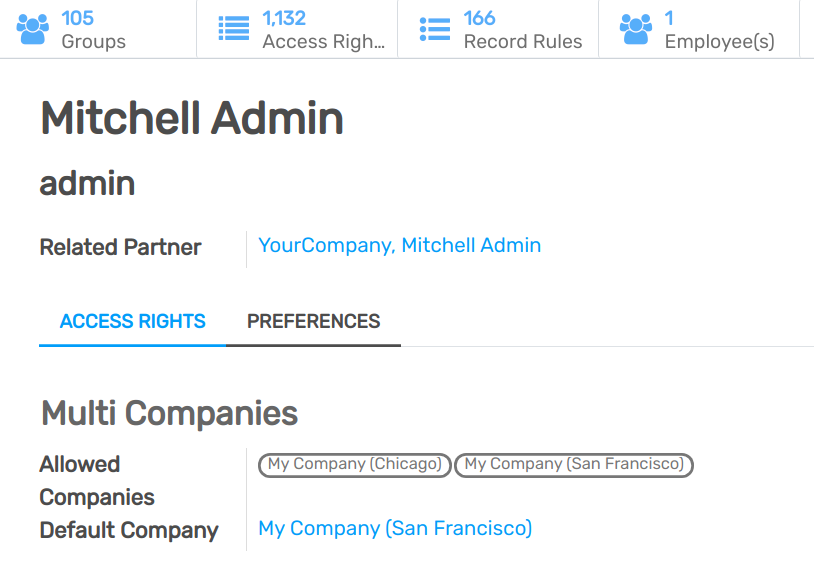 Mit dem Feld Mehrere Firmen können Sie festlegen, auf welche der von Ihnen geführten Datenbanken mit mehreren Firmen der Benutzer Zugriff haben kann.
