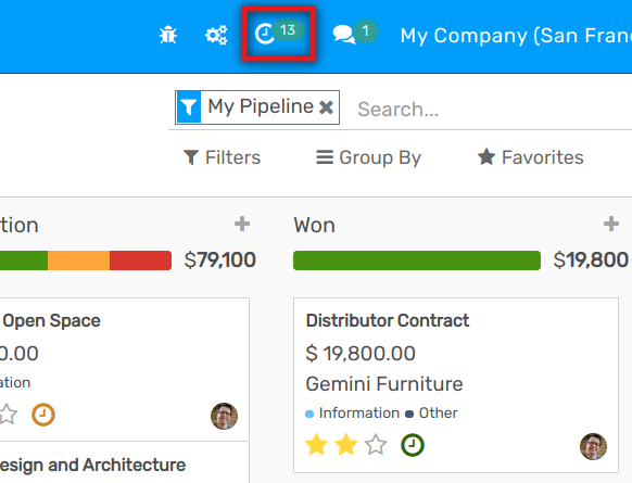 Greifen Sie auf Ihre Aktivitäten zu und verwalten Sie sie, wo immer Sie sich in openAPPone befinden, über das Menü Aktivitäten (das Uhrensymbol rechts oben).