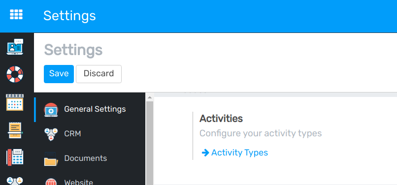 In openAPPone ist eine Reihe von Aktivitätstypen standardmäßig verfügbar (Anruf, E-Mail, Besprechung usw.). Sie können jedoch neue Typen unter einstellen.
