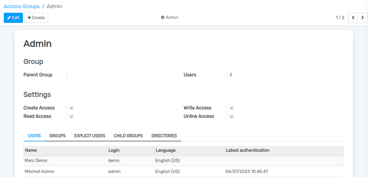 Im Verzeichnis können Sie auch andere (oben erstellte) Zugriffsgruppen hinzufügen, die dazu in der Lage sein werden: