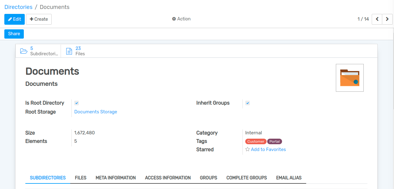 Sie können jeden Portalbenutzer zu den DMS-Zugriffsgruppen hinzufügen und dieser Gruppe dann den Zugriff auf Verzeichnisse erlauben, so dass sie im Portal diese Verzeichnisse und ihre Dateien sehen. Eine weitere Möglichkeit besteht darin, auf die Schaltfläche “Freigeben” innerhalb eines Verzeichnisses oder einer Datei zu klicken, um einen tokenisierten Link für den Einzelzugriff auf diese Ressource zu erhalten, unabhängig davon, ob er angemeldet ist oder nicht.