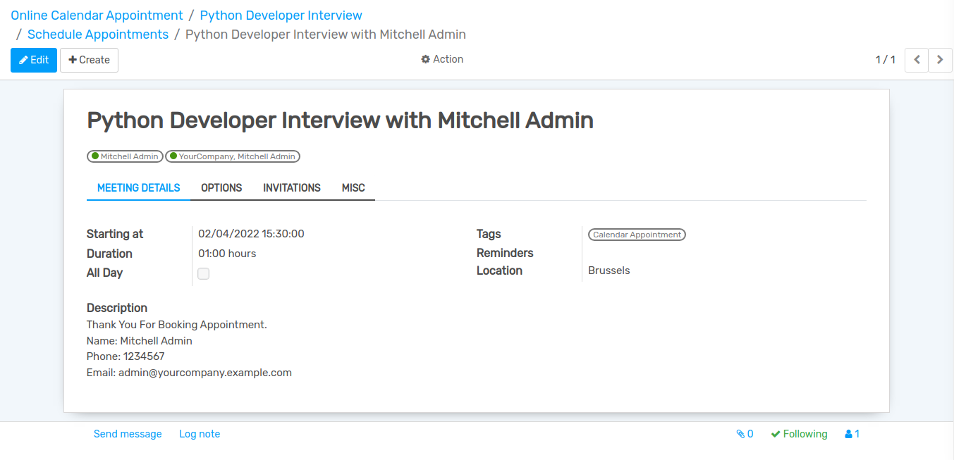 Name :- Geben Sie den Namen des Termins im Feld Name an.
