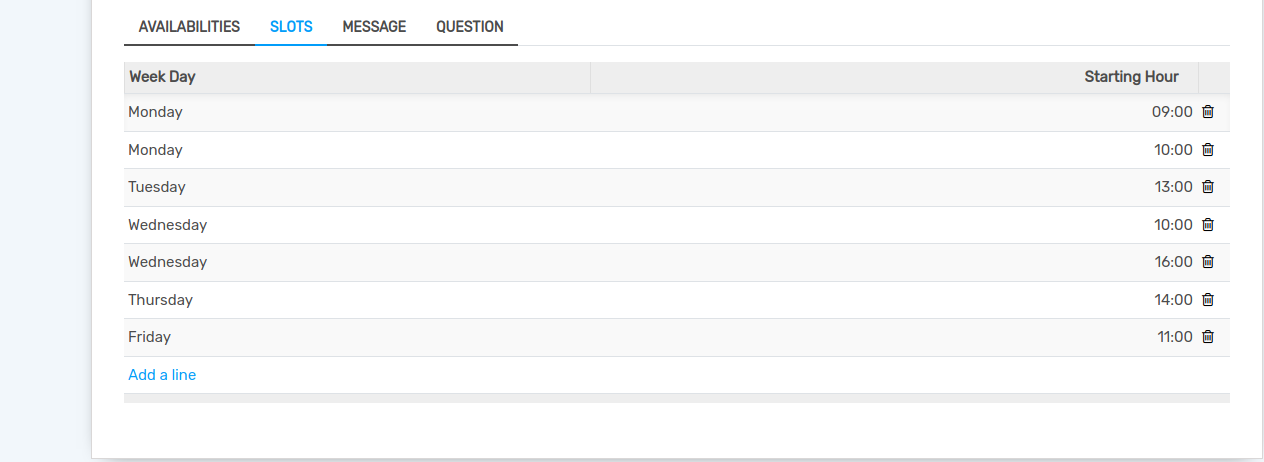 Fügen Sie auf dieser Seite Slots für aktuelle Termine hinzu.