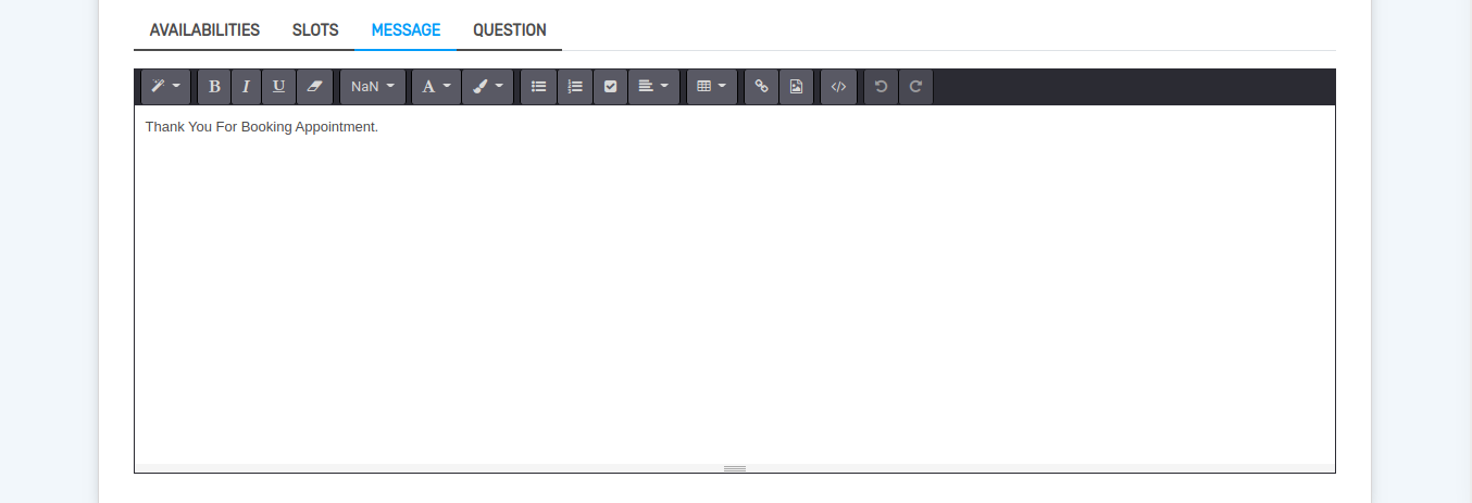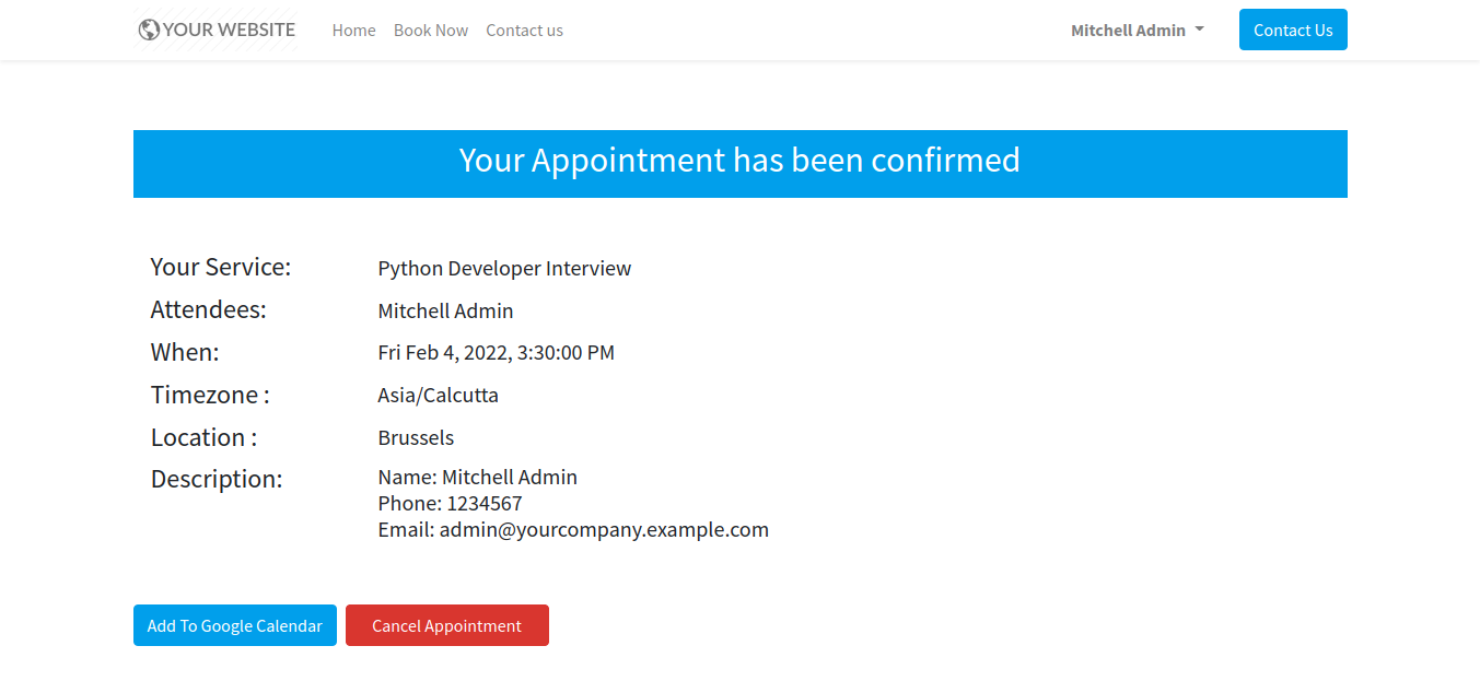 Terminabsage zulassen :- Wenn dieser Boolesche Wert gesetzt ist, kann der Benutzer den Termin stornieren.