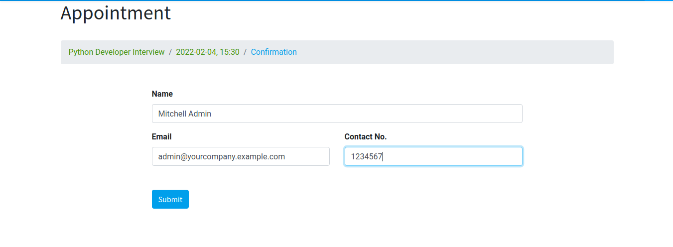 Geben Sie Ihren Namen, Ihre E-Mail-Adresse und Ihre Kontaktnummer ein und klicken Sie auf Senden.